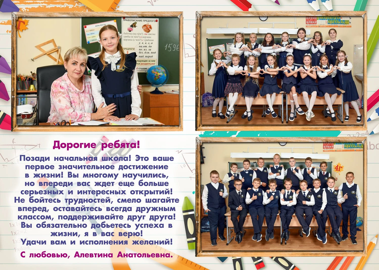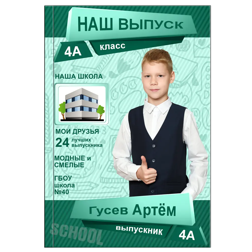 Выпускные папки — это отличный и надежный способ сохранить первые школьные шаги, любимый класс и атмосферу начальной школы. Выпускные папки начальной школы — это отличный и надежный способ сохранить первые школьные шаги, любимый класс и атмосферу начальной школы. Я создаю выпускной альбом для 4 класса и альбом для 1-4 классов с живыми фото начальной школы, групповыми фото и портретами учеников — теплые школьные воспоминания для родителей и классного руководителя.