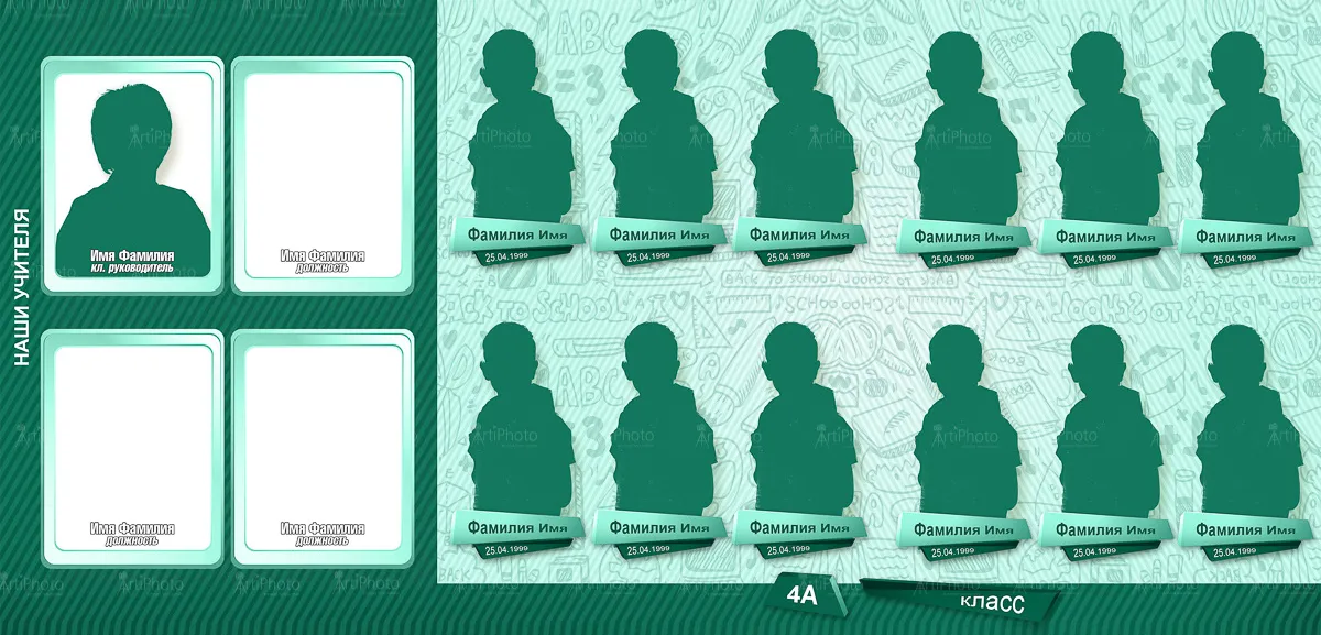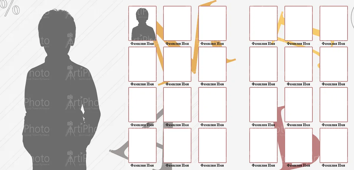 • Индивидуальный портрет + групповой разворот.