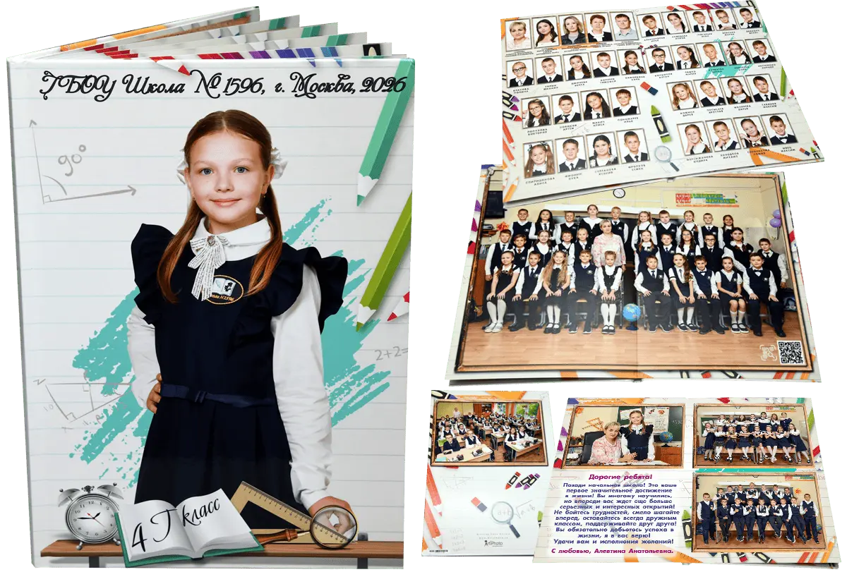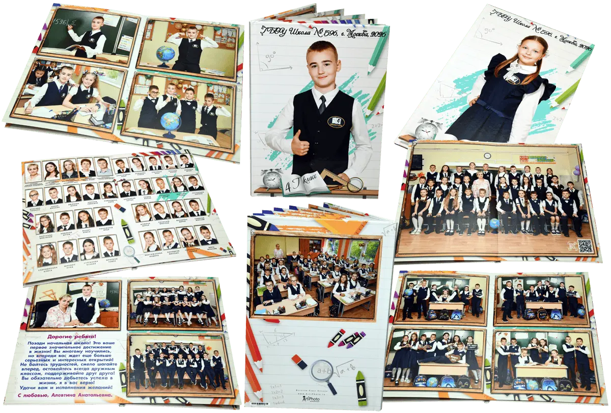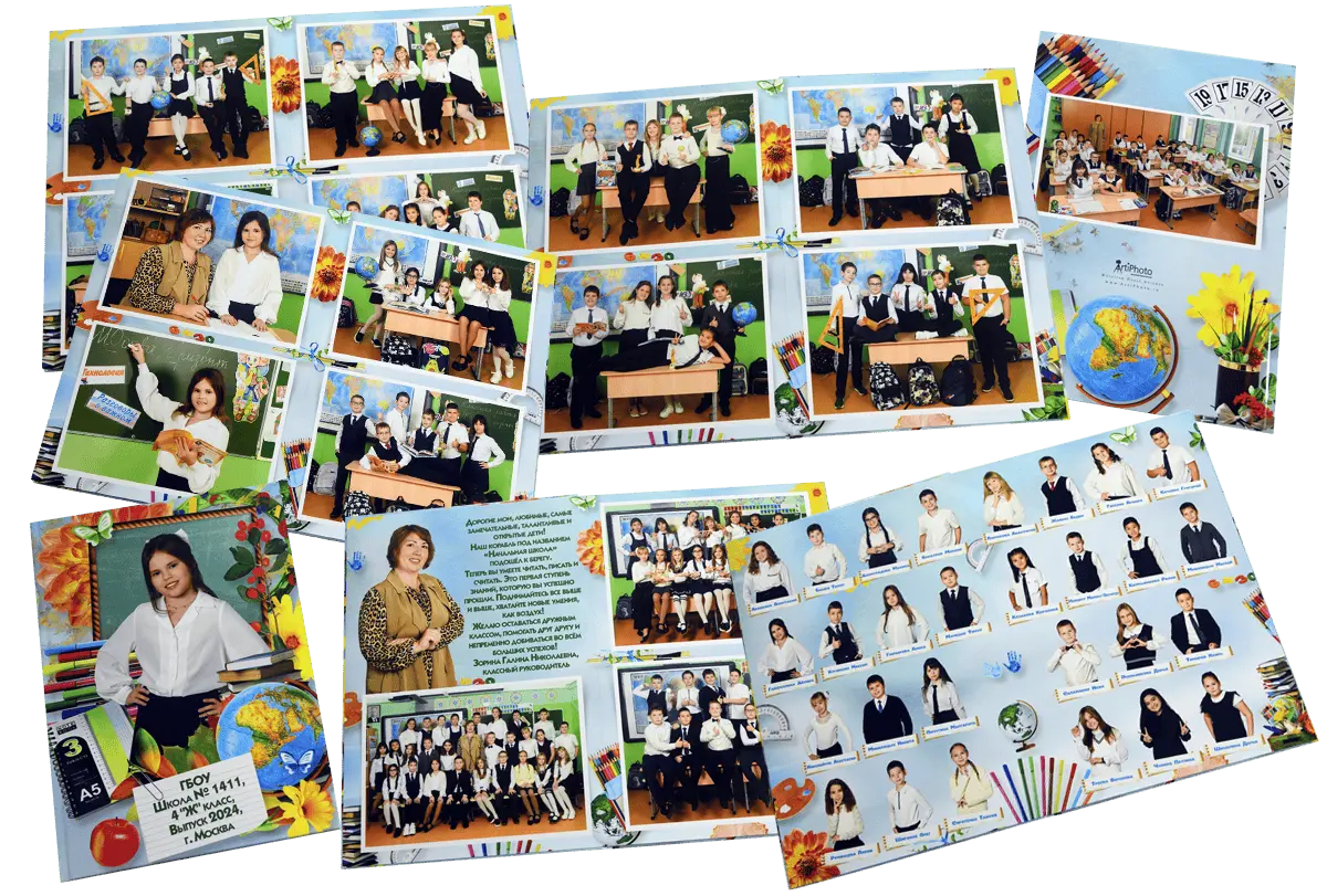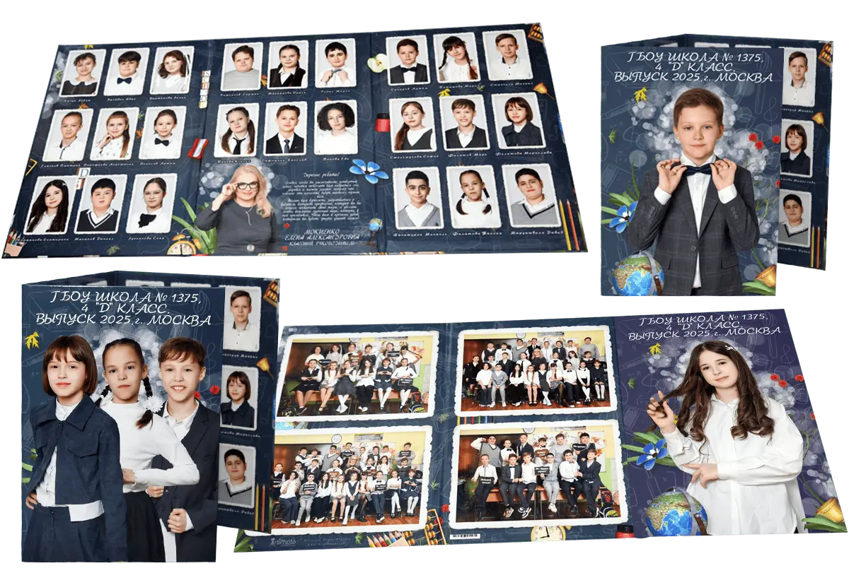 Альбомы для начальной школы сохраняют историю первых звонков, новых друзей и добрых учителей. Стильные, яркие и душевные — они передают атмосферу детства на долгие годы.