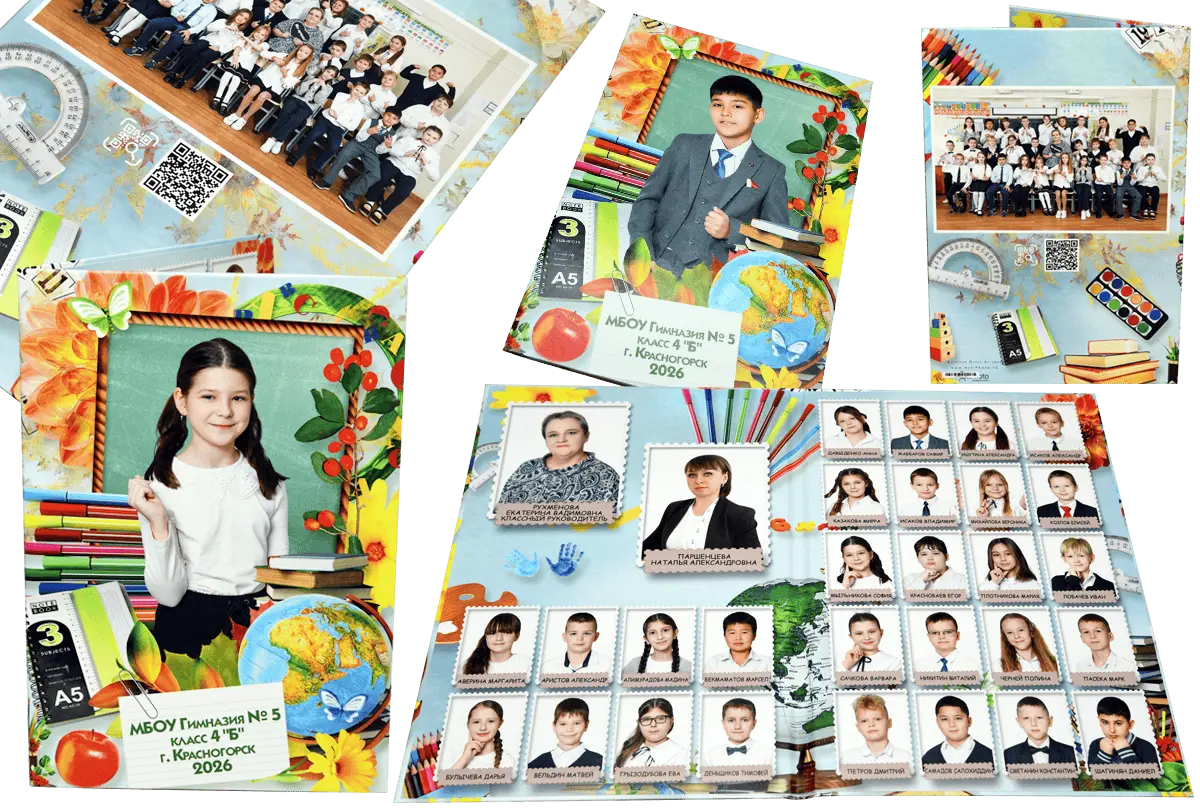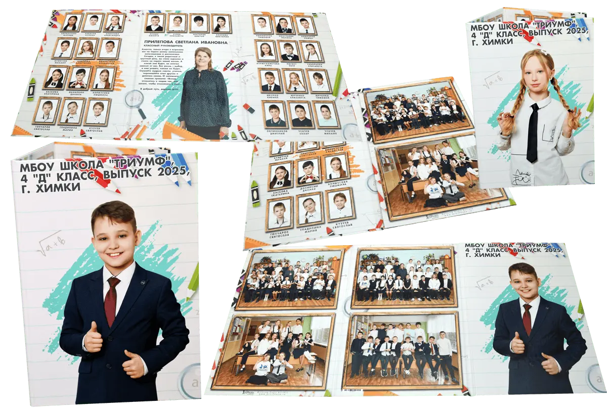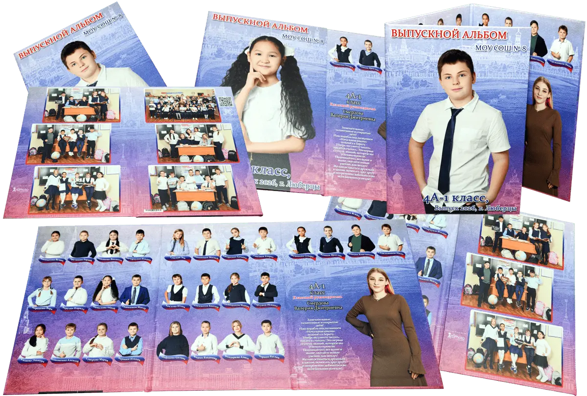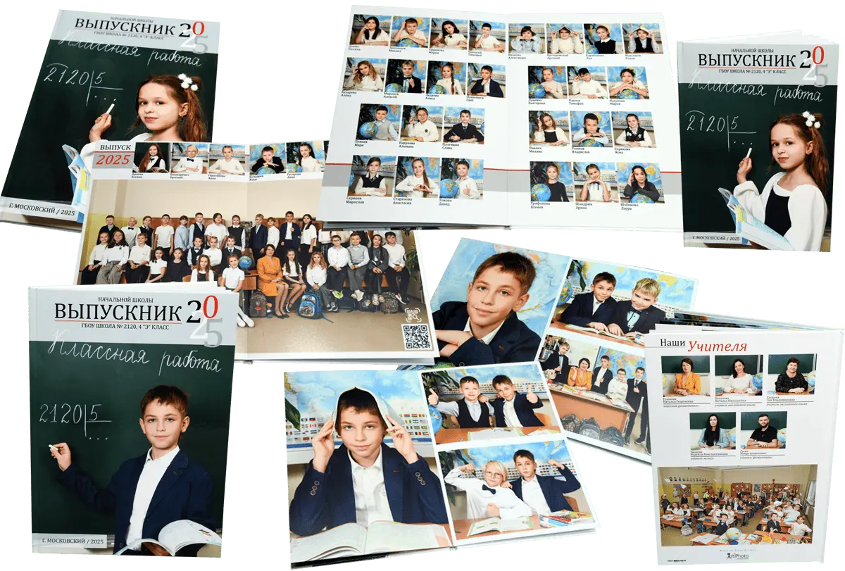 Альбомы для начальной школы сохраняют историю первых звонков, новых друзей и добрых учителей. Стильные, яркие и душевные — они передают атмосферу детства на долгие годы.