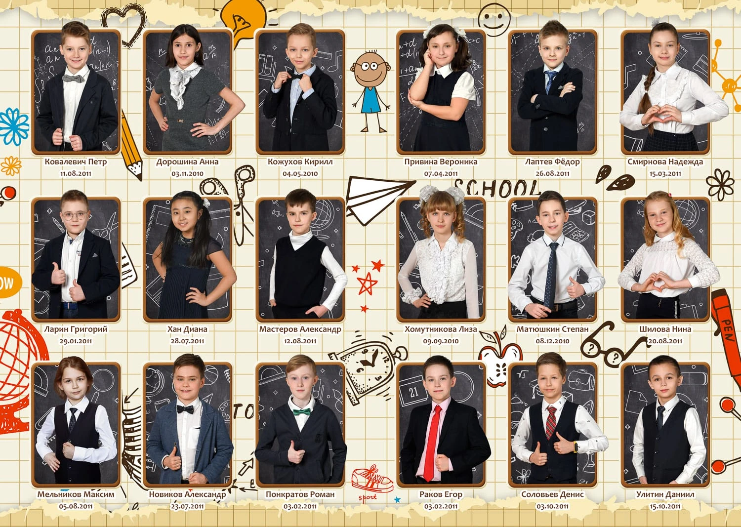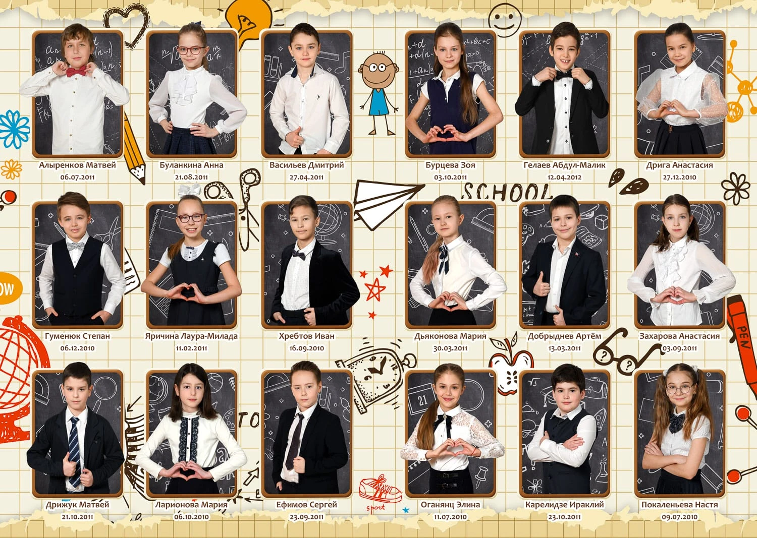 Фотография делается в классе/в актовом зале или на улице.